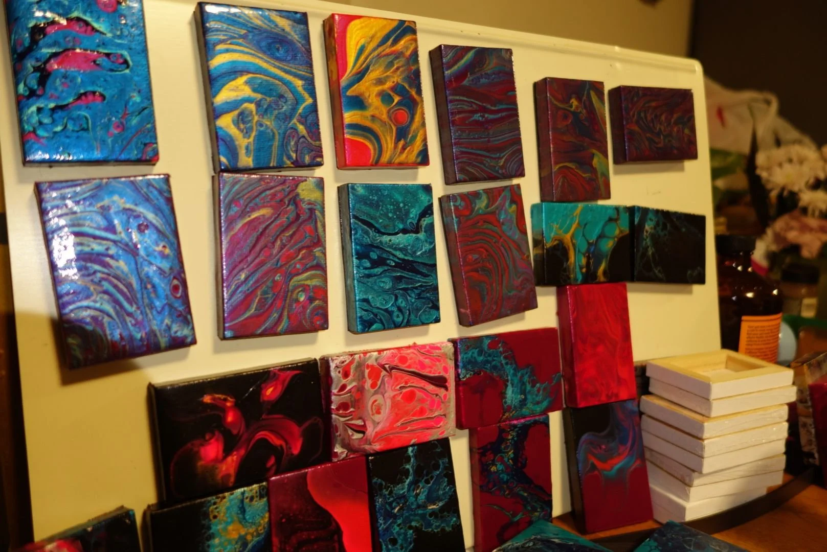 3 Pocket Painting Fridge Magnets -$40 per person (includes three mini canvases 2”x3”x1/8” with hand-crafted magnetic backing - Ideal Paint Party for smaller spaces)
